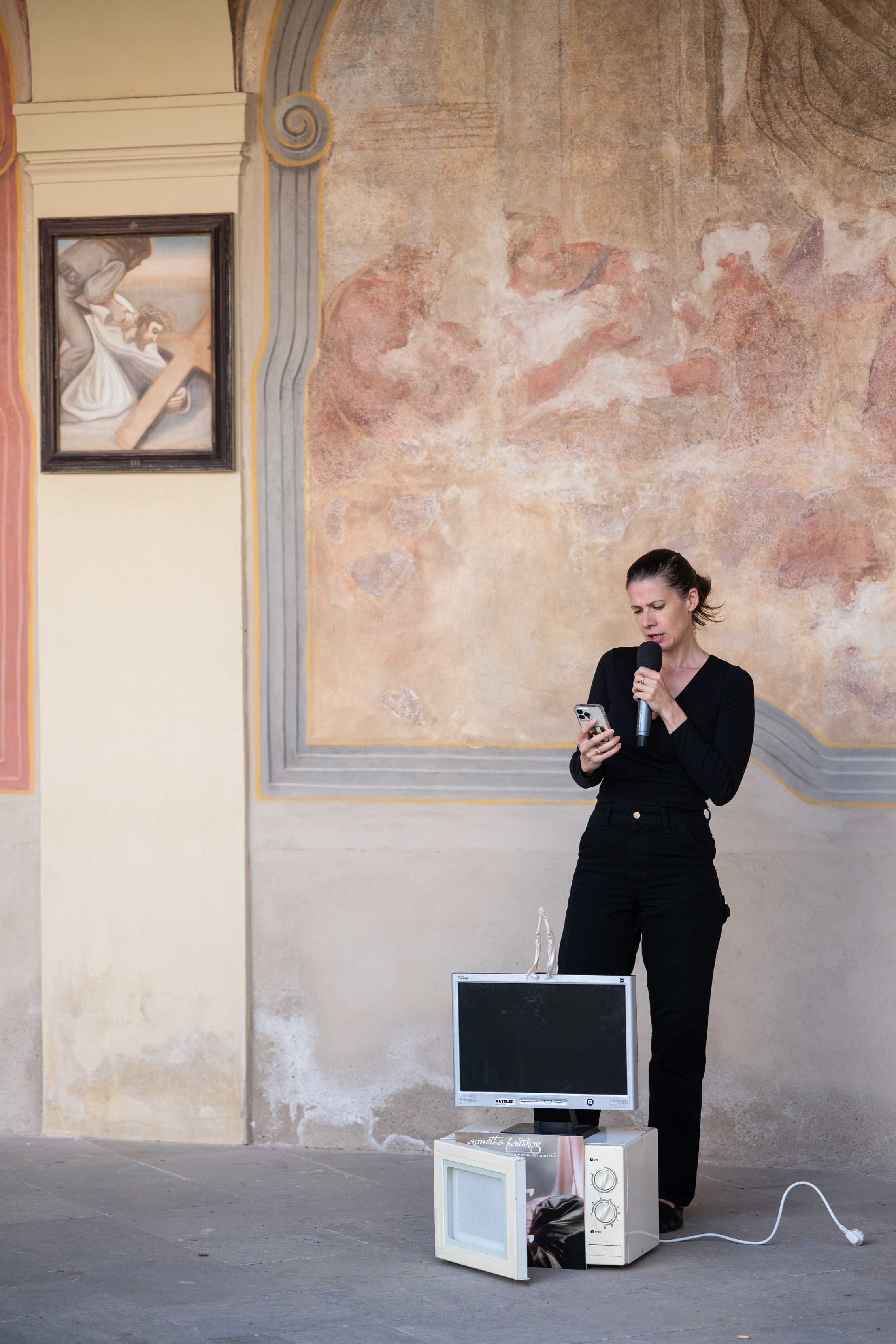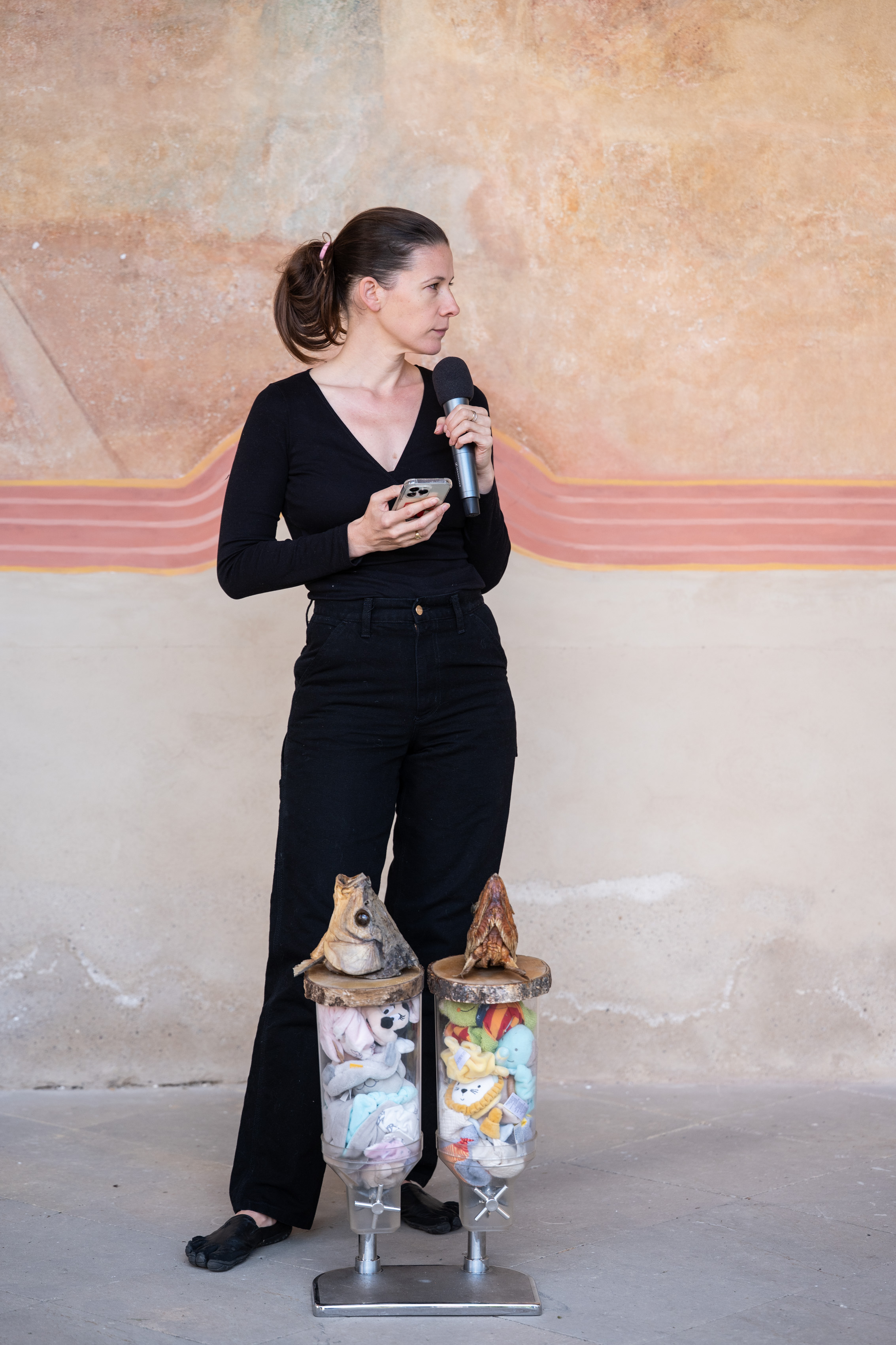 Pro tvorbu Sophie Jung (nar. 1982, Lucembursko, působí mezi Basilejí a Londýnem) je charakteristické, že čte své nové texty napsané v reakci na konkrétní prostředí a sochy, které vytváří z nalezených předmětů pocházejících z místa a jeho okolí.